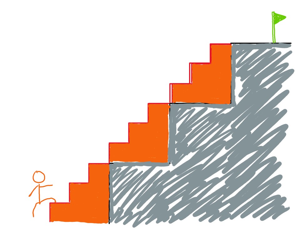 I have been providing free/pay-what-you-can math tutoring for students with additional learning challenges and financial needs. When I am teaching students with additional learning challenges, I always imagine a staircase which is too high and wide for that student to climb up. My role as a teacher here is to subdivide each stair to have mini-stairs that are much easier to climb up.